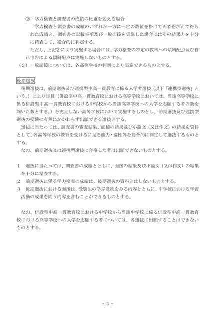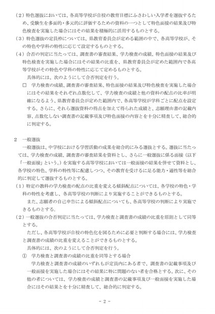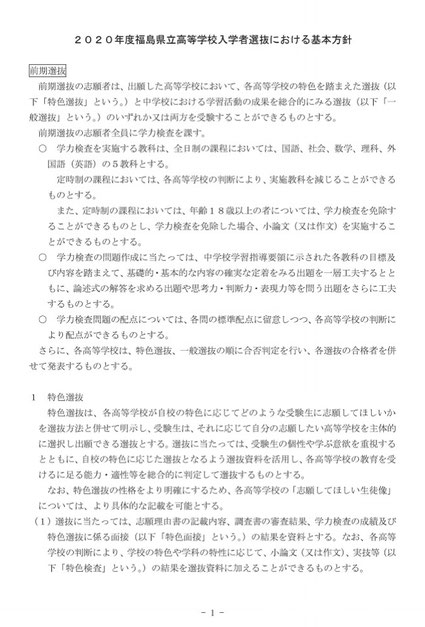 2020 県立高 前期選抜(特色・一般)、後期選抜 基本方針 発表